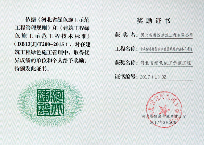 河北省綠色施工示范工