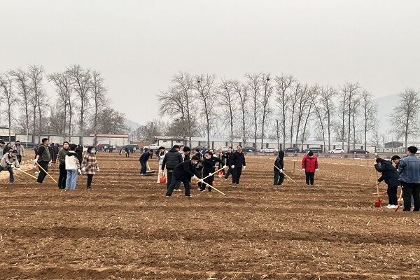 “先把自家的地壟耙起來,然后把地摟平!”在種植基地,不時傳來李懷生指導大家的聲音,各單位積極響應,熱火朝天地掄起耙子等農(nóng)具,在各自地塊開始了種植前的準備工作。當李懷生請來種植基地的技術人員時,大家紛紛上前認真聽講。技術人員向大家詳細講解了針對不同種子如何掌握挖坑深度、種植方式、覆膜等需要注意的事項后,大家個個干勁十足,全身心地投入到播種當中。種植完成后,大家打開澆灌的水龍頭,咕咕的水流進了耙好的一塊塊地畦里,這一刻,大家共同的期待一定是在這片土地上,能夠看到這些綠色蔬菜的成長與豐收。