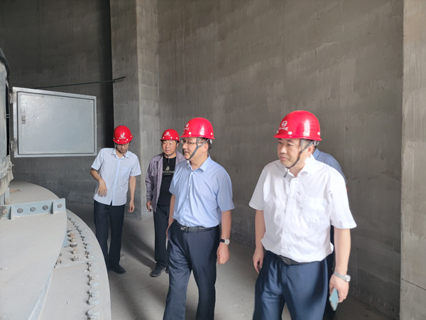 一行人首先來到項(xiàng)目后續(xù)承接的60m精煤堆棚工程前,董富強(qiáng)詢問了工程進(jìn)展情況,聽到項(xiàng)目經(jīng)理祁淼匯報(bào)經(jīng)過一個(gè)月?lián)尮ぃこ桃呀?jīng)竣工投入使用后,他對(duì)項(xiàng)目做出的成績給予肯定。隨后,一行人來到備煤系統(tǒng)配煤室筒倉工程,作為業(yè)主方高度關(guān)注的施工內(nèi)容,董富強(qiáng)非常關(guān)心工程施工情況,他詳細(xì)詢問了業(yè)主投產(chǎn)節(jié)點(diǎn)要求以及當(dāng)前施工進(jìn)度完成情況,細(xì)心地進(jìn)行完成情況與節(jié)點(diǎn)計(jì)劃的對(duì)比,多次強(qiáng)調(diào)務(wù)必保證工期履約。在了解現(xiàn)場(chǎng)整體施工情況后,針對(duì)倉上鋼結(jié)構(gòu)吊裝等高空作業(yè),董富強(qiáng)特別強(qiáng)調(diào)要毫不松懈抓安全,提出三個(gè)“必須”:一是工人安全防護(hù)措施必須配備到位;二是項(xiàng)目管理人員必須現(xiàn)場(chǎng)旁站管理;三是項(xiàng)目部必須做好后勤保障。他很注重后勤服務(wù)細(xì)節(jié),指出施工現(xiàn)場(chǎng)距離項(xiàng)目部較遠(yuǎn),正值高溫作業(yè),項(xiàng)目部要每天派人運(yùn)送綠豆湯、涼白開、藿香正氣水到施工現(xiàn)場(chǎng),以防工人中暑。