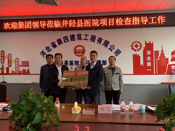 10月27日,集團黨委副書記張慶虎、黨委組織部部長張秋英、黨委組織部劉飛等一行三人到省四建二分公司井陘縣醫(yī)院項目黨支部進行黨建示范點驗收授牌。公司黨委副書記、紀(jì)委書記、工會主席李懷生,黨委組織部部長王彥森,分公司黨總支書記孫立鋒一同參加。