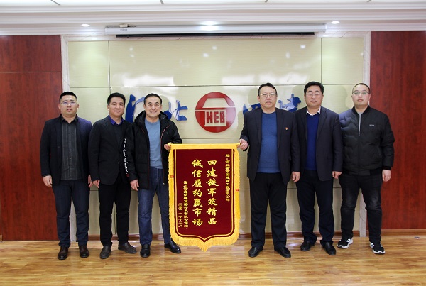 2022年1月7日上午,滄州滄海明珠旅游開發(fā)有限公司副總經(jīng)理姬新強、項目推進辦主任楊龍生一行人專程從滄州來到公司,感謝公司保節(jié)點、高質(zhì)量地完成施工任務(wù),并鄭重地將寫有“四建鐵軍筑精品 誠信履約贏市場”的錦旗送到公司黨委副書記、總經(jīng)理唐志強手中。公司副總經(jīng)理張新煜、三分公司經(jīng)理李書偉一同接待了姬新強一行。