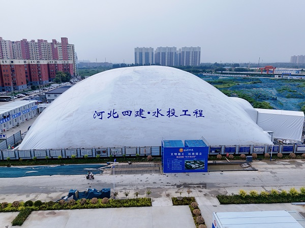 該項(xiàng)目基坑氣膜長(zhǎng)55米、寬60米、高20.5米,于2024年8月14日正式投產(chǎn)使用,具有安裝簡(jiǎn)單、可循環(huán)利用、綠色環(huán)保及節(jié)能增效等顯著特點(diǎn),是分公司大力推行綠色施工、文明施工、環(huán)保施工的一項(xiàng)重要舉措。(四分公司)