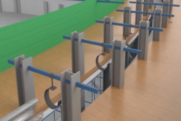 河北新彭楠焦化有限公司 251 萬噸/年焦化產(chǎn)能整合及減量項目部和安徽珍珠水泥集團股份有限公司4000t/d新型干法水泥熟料生產(chǎn)線項目部,依托項目大直徑預(yù)應(yīng)力筒倉施工,成立了專門的課題實施小組,利用AotoCAD、Revit等軟件,進行BIM建模分析,確定改進方向,最終創(chuàng)新技術(shù)方法進行施工。在大直徑預(yù)應(yīng)力筒倉鋼絞線施工時,鋼絞線柔軟且易穿出庫壁,項目部利用直徑10mm薄壁鋼管作為軌道提前進行埋設(shè)固定,解決了鋼絞線在滑模施工時穿設(shè)出軌的問題,同時又減少了人工,加快了施工速度,在保證安全的前提下降低了施工成本。在此基礎(chǔ)上,項目部改進現(xiàn)有穿束作業(yè)工藝,采用雙向機械化穿束技術(shù),結(jié)合行程觸碰限位器精準(zhǔn)控制穿束長度,大幅縮減了穿束時間,簡化了流程,降低了人力投入,減小了滑模平臺的承載力,提高了安全性。