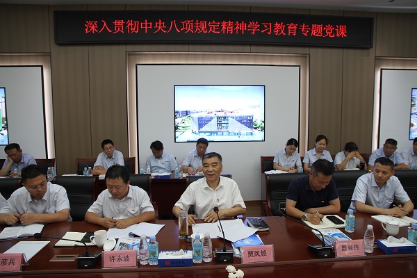 賈鳳鎖首先向大家傳達(dá)學(xué)習(xí)了6月27日省委書記倪岳峰就深入貫徹中央八項(xiàng)規(guī)定精神學(xué)習(xí)教育講授的專題黨課精神,隨后他緊密聯(lián)系自己的思想認(rèn)識(shí)和工作實(shí)際,從五個(gè)維度切入,以詳實(shí)案例、深刻見解,結(jié)合集團(tuán)實(shí)際發(fā)展需求,為與會(huì)人員帶來一場(chǎng)別開生面、干貨滿滿的黨課。一是深刻領(lǐng)會(huì)開展深入貫徹中央八項(xiàng)規(guī)定精神學(xué)習(xí)教育的重大意義。這是鞏固深化主題教育和黨紀(jì)學(xué)習(xí)教育成果、縱深推進(jìn)全面從嚴(yán)治黨的重要舉措;是密切黨群干群關(guān)系、鞏固黨的執(zhí)政基礎(chǔ)的必然要求;是加強(qiáng)干部作風(fēng)建設(shè)、實(shí)現(xiàn)企業(yè)高質(zhì)量發(fā)展的有力保障。開展深入貫徹中央八項(xiàng)規(guī)定精神學(xué)習(xí)教育,就是要促使集團(tuán)黨員干部以更加優(yōu)良的作風(fēng),積極投身到集團(tuán)確定的各項(xiàng)目標(biāo)任務(wù)中,勇于擔(dān)當(dāng)、積極作為,努力開創(chuàng)集團(tuán)高質(zhì)量發(fā)展新局面。二是準(zhǔn)確把握習(xí)近平總書記關(guān)于加強(qiáng)黨的作風(fēng)建設(shè)重要論述的核心要義。本次學(xué)習(xí)教育,為全體黨員配備了《習(xí)近平關(guān)于加強(qiáng)黨的作風(fēng)建設(shè)論述摘編》這本學(xué)習(xí)書籍,賈鳳鎖結(jié)合工作實(shí)際談了自己的學(xué)習(xí)體會(huì)。三是認(rèn)真防范企業(yè)貫徹中央八項(xiàng)規(guī)定精神潛在的風(fēng)險(xiǎn)和問題。要防范形式主義損害企業(yè)發(fā)展質(zhì)量、官僚主義削弱企業(yè)凝聚力、享樂主義影響黨員干部形象、奢靡之風(fēng)造成國(guó)有資產(chǎn)流失等四類風(fēng)險(xiǎn)。四是全面汲取深入學(xué)習(xí)貫徹中央八項(xiàng)規(guī)定精神的成效和經(jīng)驗(yàn)。集團(tuán)各單位聚焦重點(diǎn)任務(wù),多元?jiǎng)?chuàng)新學(xué)思踐悟教育模式,扎實(shí)推進(jìn)學(xué)習(xí)教育走深走實(shí)。特別是今天參會(huì)的單位學(xué)習(xí)教育成效有目共睹。比如:四建公司通過抓好領(lǐng)導(dǎo)班子學(xué)習(xí)示范,進(jìn)一步引領(lǐng)廣大黨員干部深化對(duì)中央八項(xiàng)規(guī)定精神的領(lǐng)會(huì),凝聚發(fā)展共識(shí),上半年市場(chǎng)開發(fā)87.2億元,同比增長(zhǎng)83%。五是切實(shí)把學(xué)習(xí)教育成果轉(zhuǎn)化為推進(jìn)集團(tuán)高質(zhì)量發(fā)展的強(qiáng)勁動(dòng)力。突出整治整改工作重點(diǎn),全力推動(dòng)學(xué)習(xí)教育走深走實(shí);聚焦領(lǐng)導(dǎo)班子作風(fēng)建設(shè),鍛造做強(qiáng)做優(yōu)做大企業(yè)“領(lǐng)航團(tuán)隊(duì)”;圍繞生產(chǎn)經(jīng)營(yíng)中心工作,激活促進(jìn)高質(zhì)量發(fā)展“動(dòng)力源泉”;直面“急難險(xiǎn)重”攻堅(jiān)任務(wù),筑牢完成年度目標(biāo)任務(wù)“攻堅(jiān)堡壘”。課堂上,大家認(rèn)真聽講、做好筆記,積極參與互動(dòng)交流。賈鳳鎖希望以此次學(xué)習(xí)教育為契機(jī),強(qiáng)化政治擔(dān)當(dāng),保持戰(zhàn)略定力,深刻把握中央八項(xiàng)規(guī)定精神的時(shí)代要求,堅(jiān)決糾治“四風(fēng)”頑疾,弘揚(yáng)真抓實(shí)干作風(fēng),團(tuán)結(jié)帶領(lǐng)全體干部職工以昂揚(yáng)姿態(tài)、務(wù)實(shí)行動(dòng),共同書寫集團(tuán)高質(zhì)量發(fā)展的嶄新篇章!