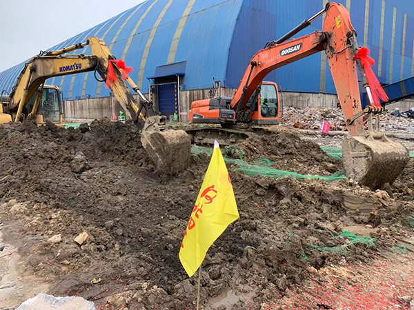5月2日和3日連續(xù)降雨,打樁后產(chǎn)生的淤泥經(jīng)大雨沖刷散布現(xiàn)場(chǎng)各處,雨后項(xiàng)目全體人員開(kāi)始清淤工作,因環(huán)保要求白天不宜外運(yùn)出場(chǎng),管理人員便夜間加班“作戰(zhàn)”,爭(zhēng)分奪秒為后續(xù)工作創(chuàng)造工作面。白天平整場(chǎng)地、夜間倒運(yùn)淤泥,經(jīng)過(guò)項(xiàng)目全體人員的連日奮戰(zhàn),使項(xiàng)目具備了開(kāi)工條件。